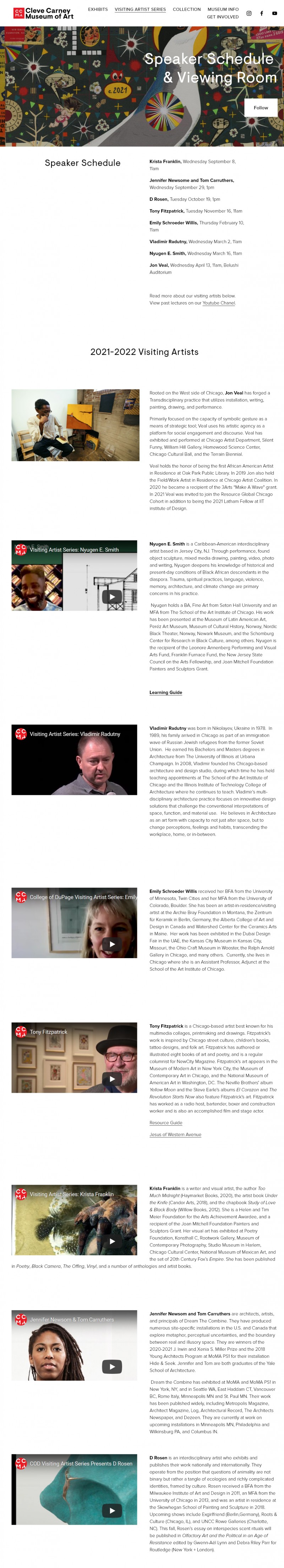 This year’s series highlights artists who are committed to engaging with materiality through diverse mediums and practices. These workshops and lectures provide opportunities for the community to engage with leaders in the fields of contemporary art, design and culture.