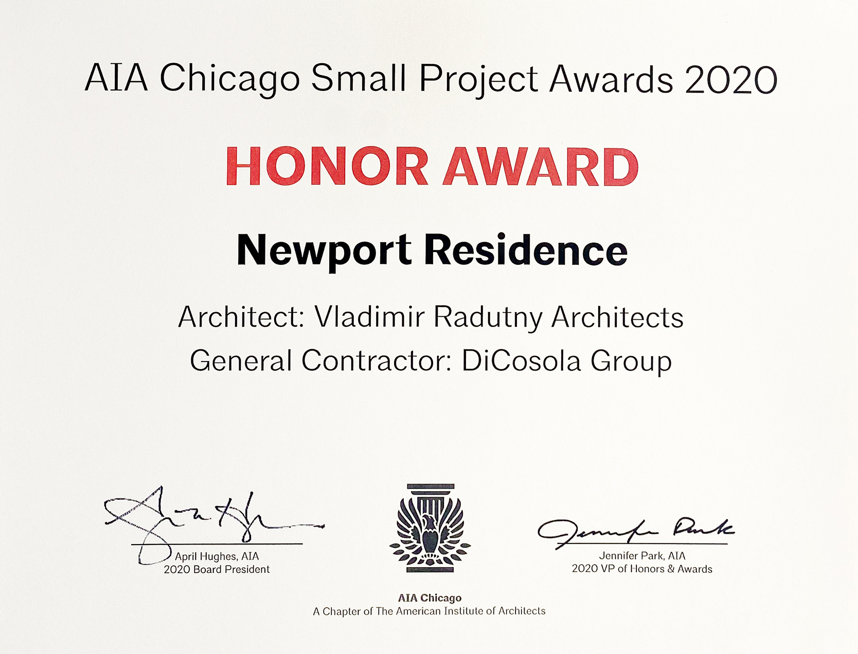 On Thursday, June 25th, we were honored to receive two AIA Chicago Small Projects Awards. Unit 2808 was recognized with a Citation of Merit Award, and Newport Residence was recognized with an Honor Award.