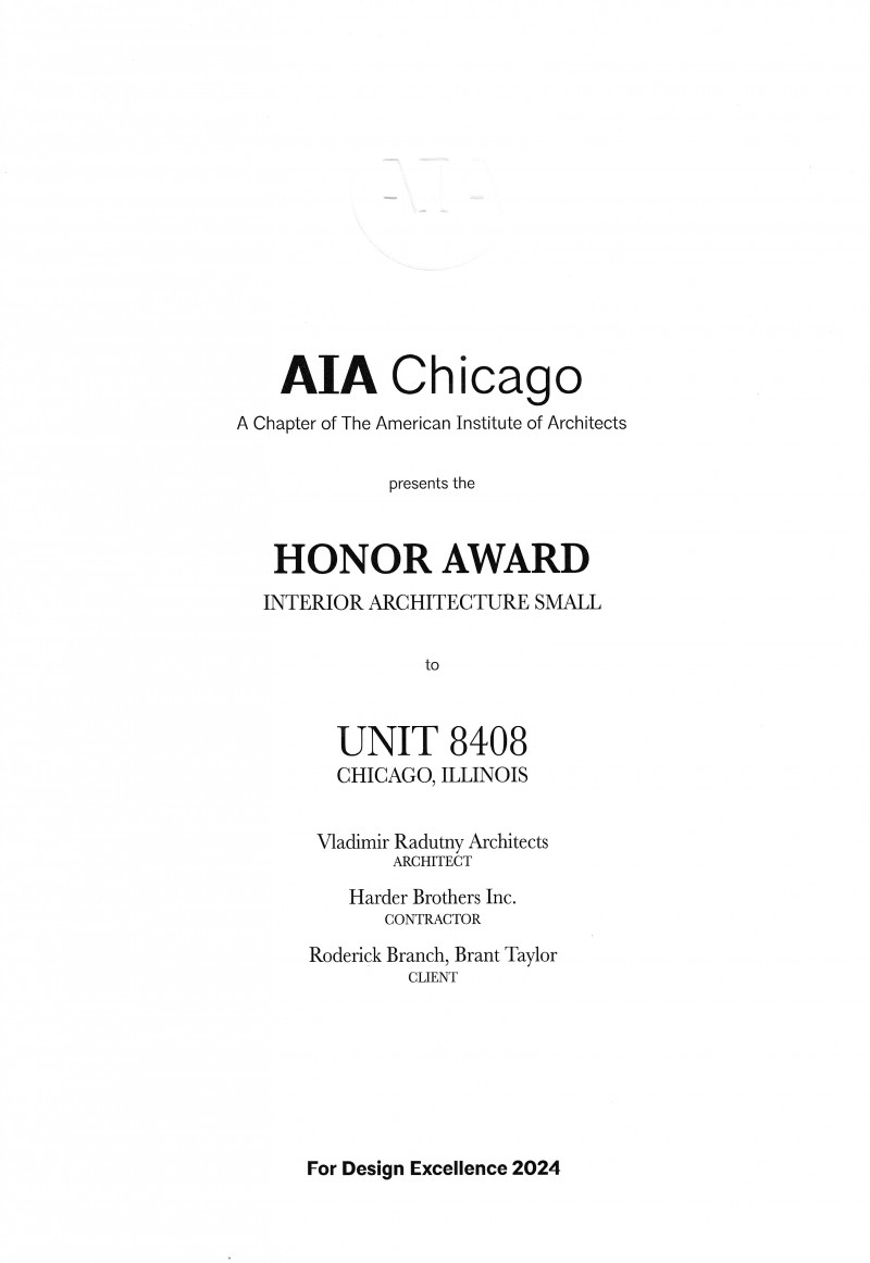 On Thursday, September 5th, we were honored to receive AIA Chicago Design Excellence Award in Architecture Small Category. Our Unit 8408 project was recognized with AIA Chicago Design Honor Award.