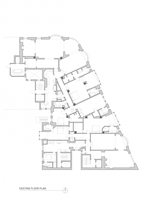 Erected in 1912, this 10-story landmark structure is one of the oldest multi-family buildings in Chicago. Originally built with 3 distinct units per floor, each uniquely shaped due to its location along the bend of Lake-Shore-Drive. In contrast to today’s lifestyle, these apartments were designed in a time of compartmentalized living, with servants and social formalities in place, resulting in a divided interior with little connection to the outside.