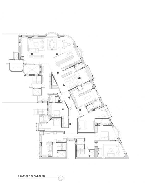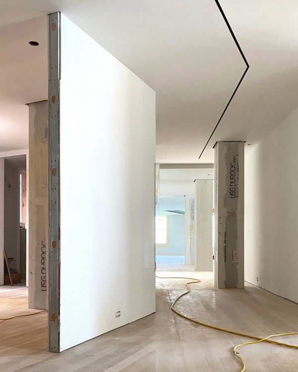 In our preliminary walk-through we experienced the weight of the period, characterized by thick ornate walls, narrow corridors, and maze-like configuration. Seeking to live in a brighter and much more open space, our clients tasked us to combine two large apartments as their new home. We responded by stripping the spaces down to core building elements, revealing the perimeter and structure. Newly liberated columns became the catalyst for organizing the entire dwelling, marching through the interior and bringing two distinct apartments together as one cohesive whole.