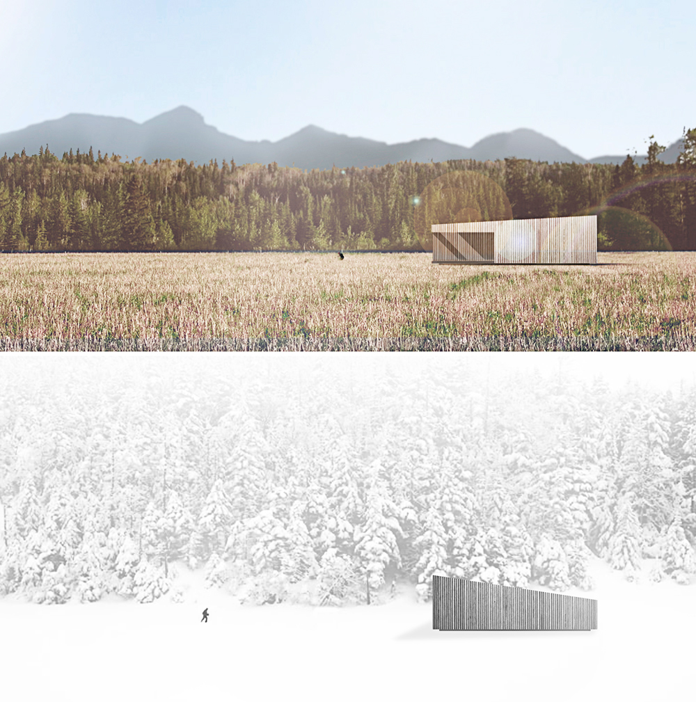 Given the prominence of the Vermont’s mountainous landscape, this artist studio is configured to maximize ones connection with its surroundings. From one end of the space capturing the views of the bolder tree lines and at the other the majestic mountain range.