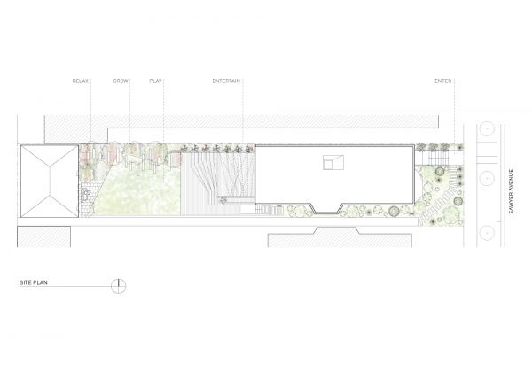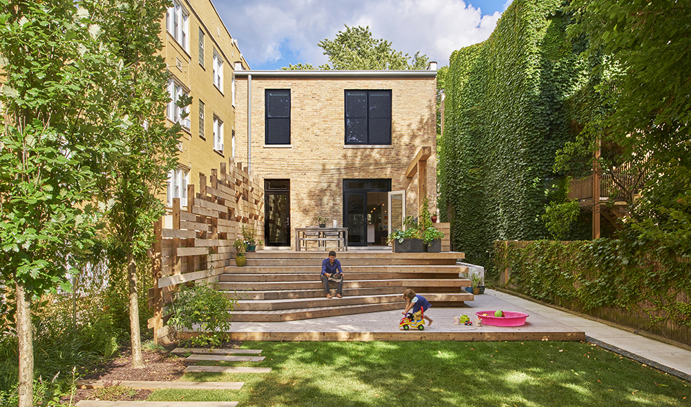The exterior of this single family is thought of as an arrangement of continuous landscaped zones offering seasonal beauty for the homeowner, the neighbors, and an occasional passerby. The front, side, and rear yards are all stitched together using similar material palette of crushed bluestone gravel, large pavers, and indigenous plants. Varying in both color and aromas throughout the growing seasons, an urban landscape that is wild, yet beautiful is visible from the windows of both the home and the surrounding buildings.
