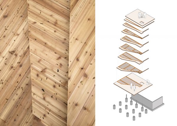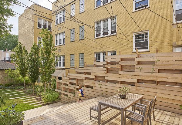 The principal element of this landscape project is the back yard, where the new sculpted deck transforms it into a place for gathering, refuge and play. Composed of cascading cedar platforms, the homes main living floor extends and gradually descends to grade. Each step widens and turns, letting the imagination run wild with its myriad functions. The oversized privacy screen is integrated into the overall composition such that it is not perceived as a wall to the neighbor on the North, but as a new shared elevation in between. Treating the overlap and density of wood elements similar at both sides allows for light and shadow to be mutually appreciated. Over time, the planted “Virginia Creeper” ivy will take over the screen, eventually climbing the guide wire and transforming the deck into a gazebo, adding extra shade and privacy as well as additional backyard splendor for all to admire.