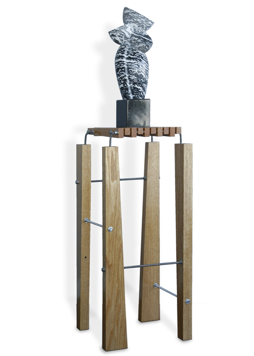 Use: Sculpture Stand Material: 2x4 Oak Base / 3/4"Oak Top / Threaded Rod Connections Size: w 14" d 14" h 32" Status: Completed 2005