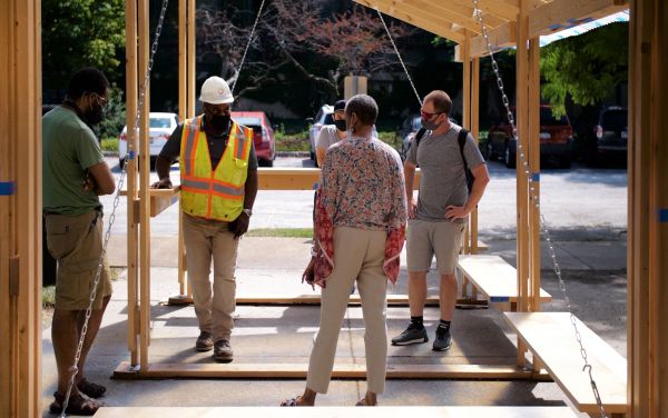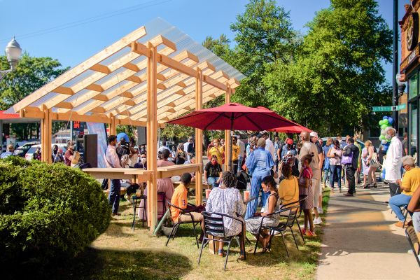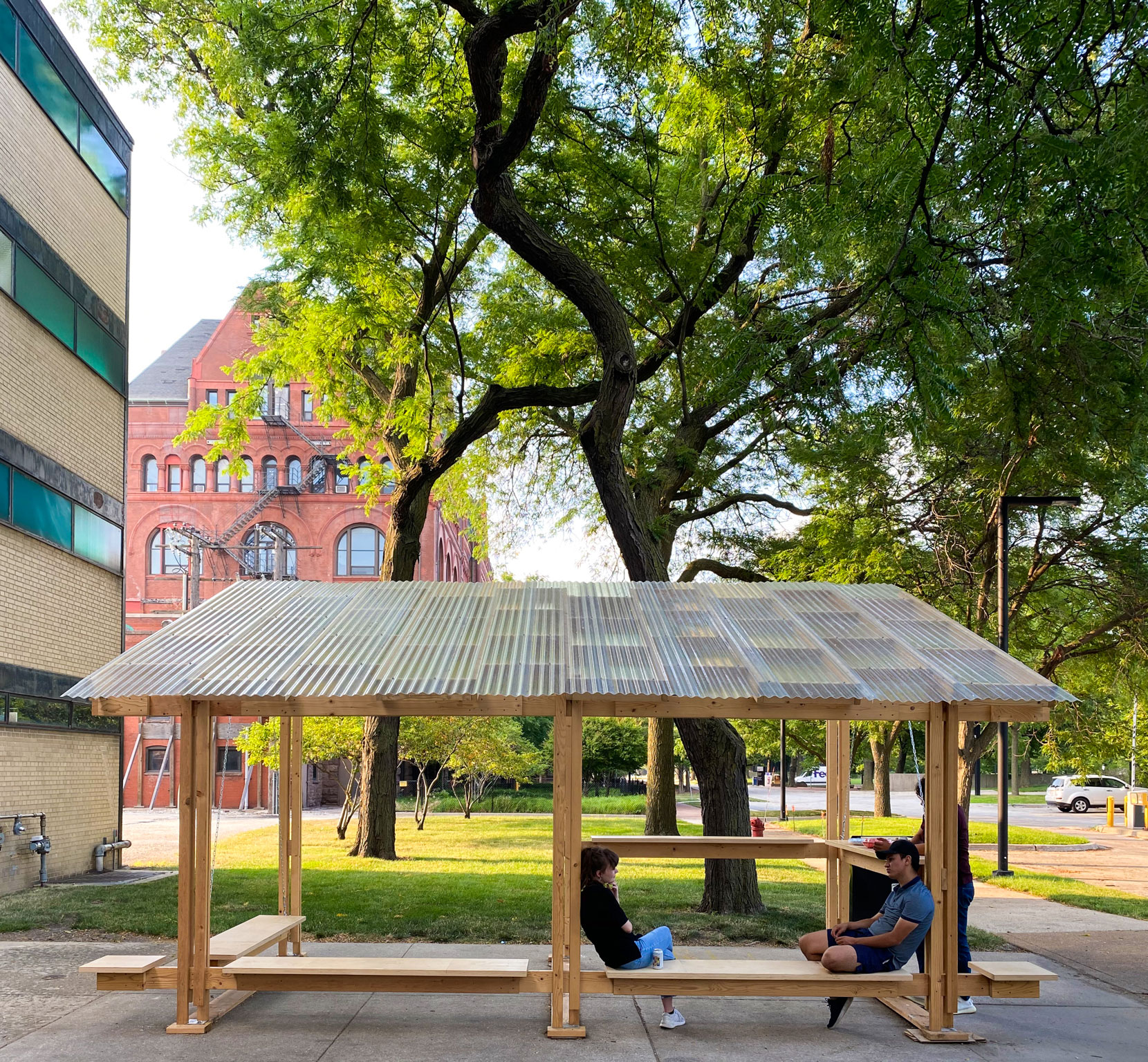 In joining “ARC-All Reimagining Chicago” an ad hoc Architecture group for COVID 19 re-opening on the South and West sides of Chicago, we offered our pro bono design services to develop, test, and build an outdoor, social distancing pavilion. Which in the end found its first home as part of the 75th Street Boardwalk project, supported by the Chicago Department of Transportation and the Greater Chatham Initiative.