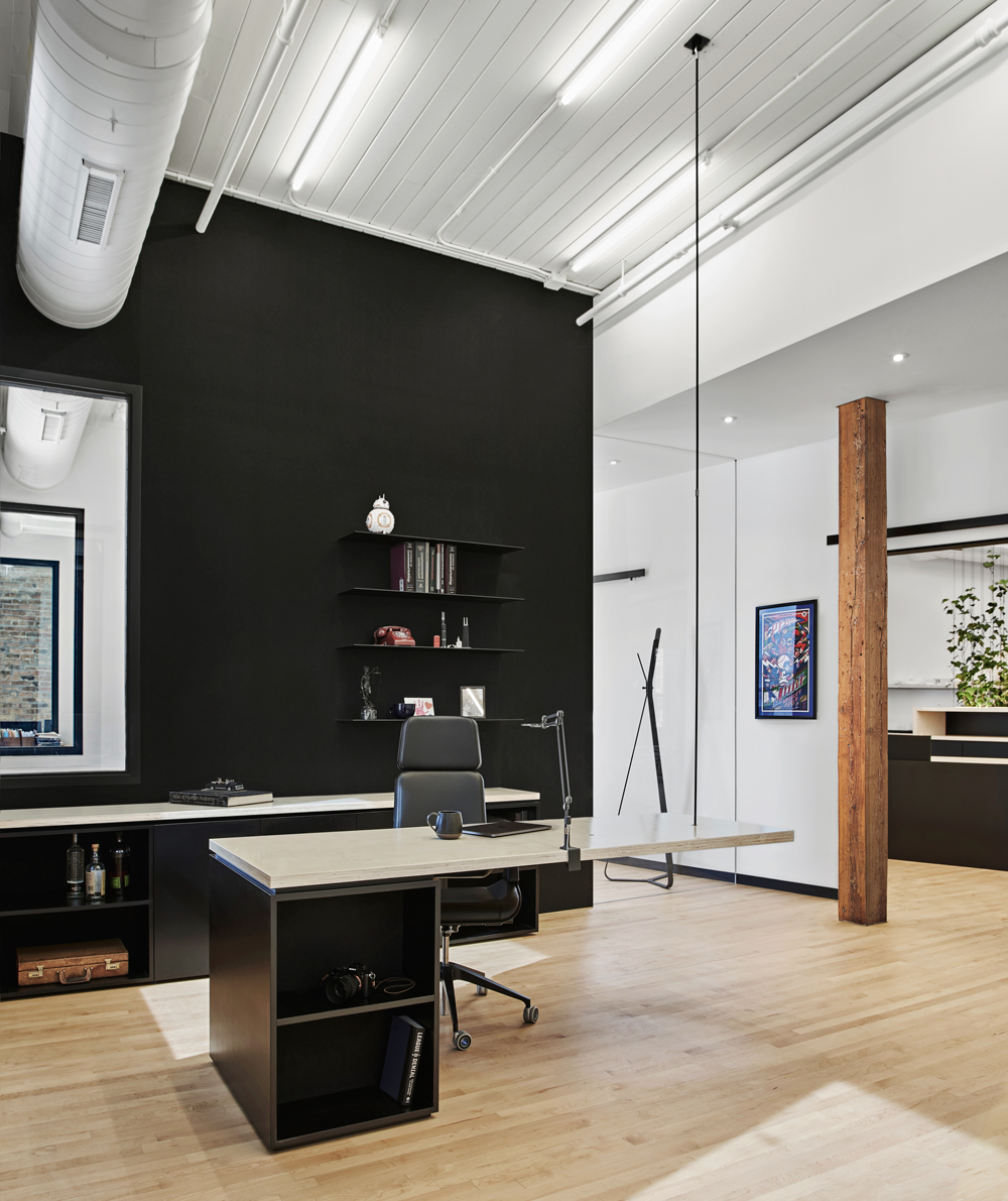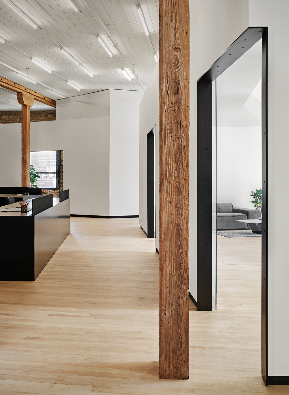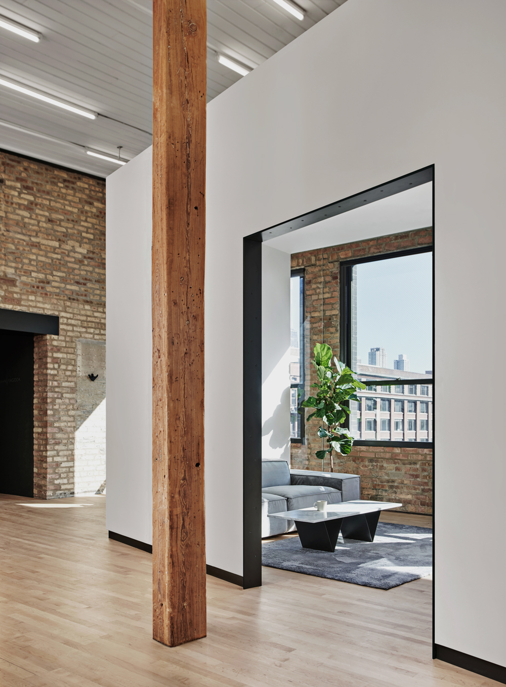 When visiting this understated manufacturing loft for the first time, we were captivated by the intrinsic elements of raw masonry walls, the distressed timber structure and the abundance of natural light. It’s immediate connection with the urban context captures the noise of city traffic, the views of elevated trains and the Chicago’s most iconic architecture. To us, these spatial nuances needed to be emphasized and brought forth for all users of our client’s new law firm.