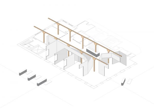 Spatial design opportunities within timeworn structure exemplifies how thoughtful planning and organization is able to enrich the daily experiences of the individuals using their workspace.
