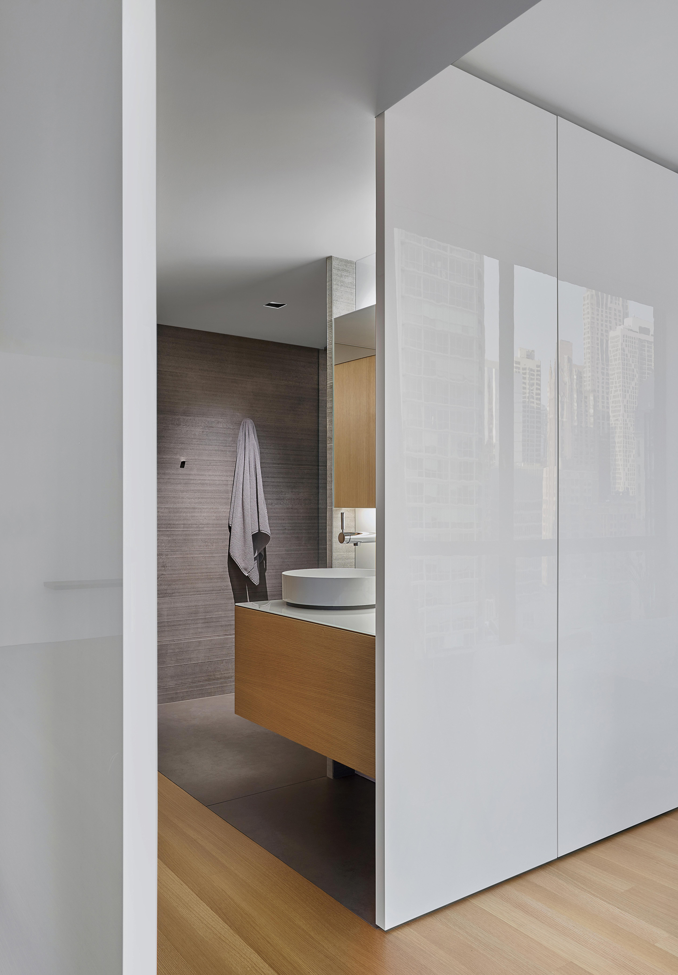 Oriented South towards the Chicago skyline, this 28th floor dwelling was renovated for a couple desiring an urban sanctuary as their second home. Captivating views and beautiful light were already present as the main ingredients for making this apartment a tranquil space. To further amplify this serenity, we freed the interior from visual obstructions towards the skyline and opened vantage points that did not previously exist. The interior composition of floating planes and articulated surfaces provide privacy and domesticity while maintaining a sense of openness and cohesion within the space.