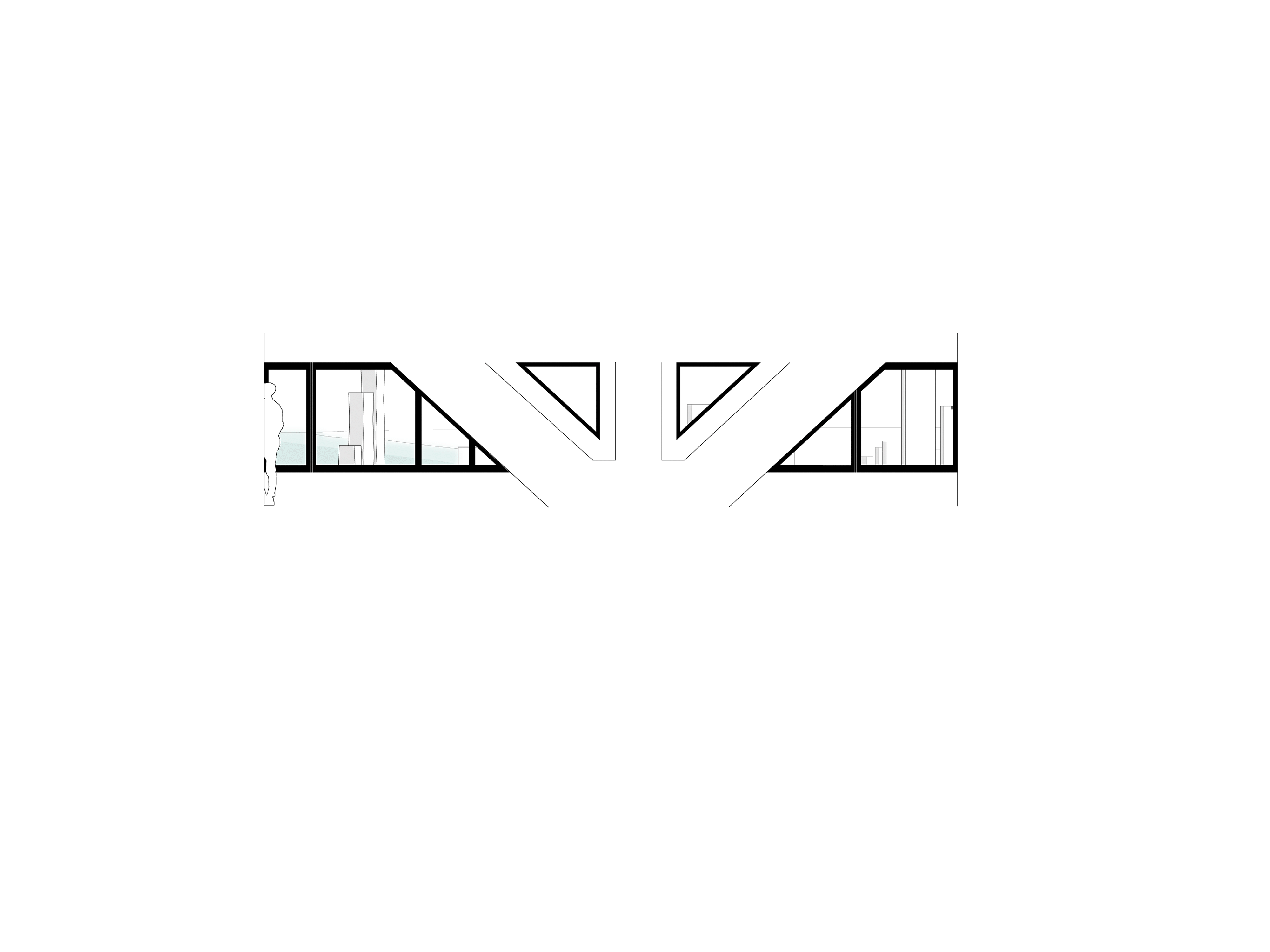 In our first visit to this 84th floor residence, we were surprised with how compartmentalized and dark the unit actually felt. Unless standing directly at the exterior wall, the deep footprint, built out structure, and low ceilings severely limited outside views and natural light. The apartment’s main feature, steel cross-bracing, was concealed beneath a thick layer of fireproofing and drywall, which made the exterior wall appear heavy and less approachable. Fortunately, the two bedrooms on either side of the living areas were far less obstructed and had a much better connection to the skyline.