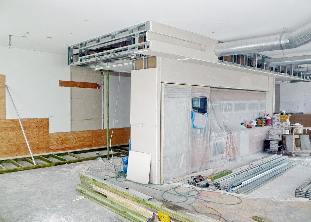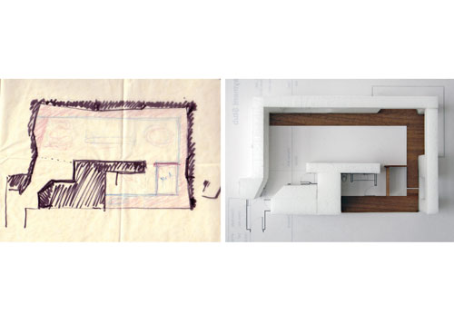 The decision was made to completely build out the viewing perimeter in order to transform it into one continuous, floating picture plane. As it wraps the existing interior, a series of ocular zones are created at each of the window openings, adding discreet spaces within this new wall. To re-capturing some of the lost square footage due to the new built-out wall we incorporated household functions within its depth at various strategic locations. This loft is further transformed with a raised wood platform, running continuously around the entire Northwest perimeter; it subtly defines a new zone within this seemingly open plan.